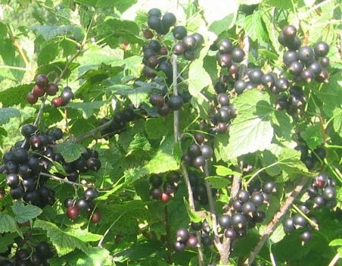 Ягоды крупные или средние, черные, слабо блестящие. Средняя масса 1,2 г., максим 2,0 г.