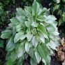 Хоста Вайт Фезе (Белое перо) (M) - Листья узкие, волнистые, белые весной, затем меняются на зелёные с белыми полосами. Цветки светло-лавандовые. Крупная, быстро растущая хоста. Куст высотой до 35см. Период цветения июль-август.