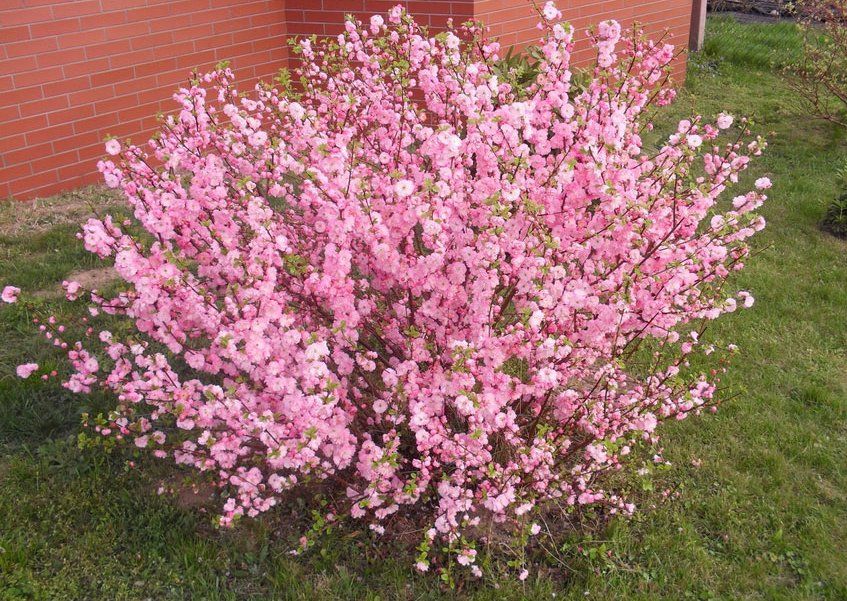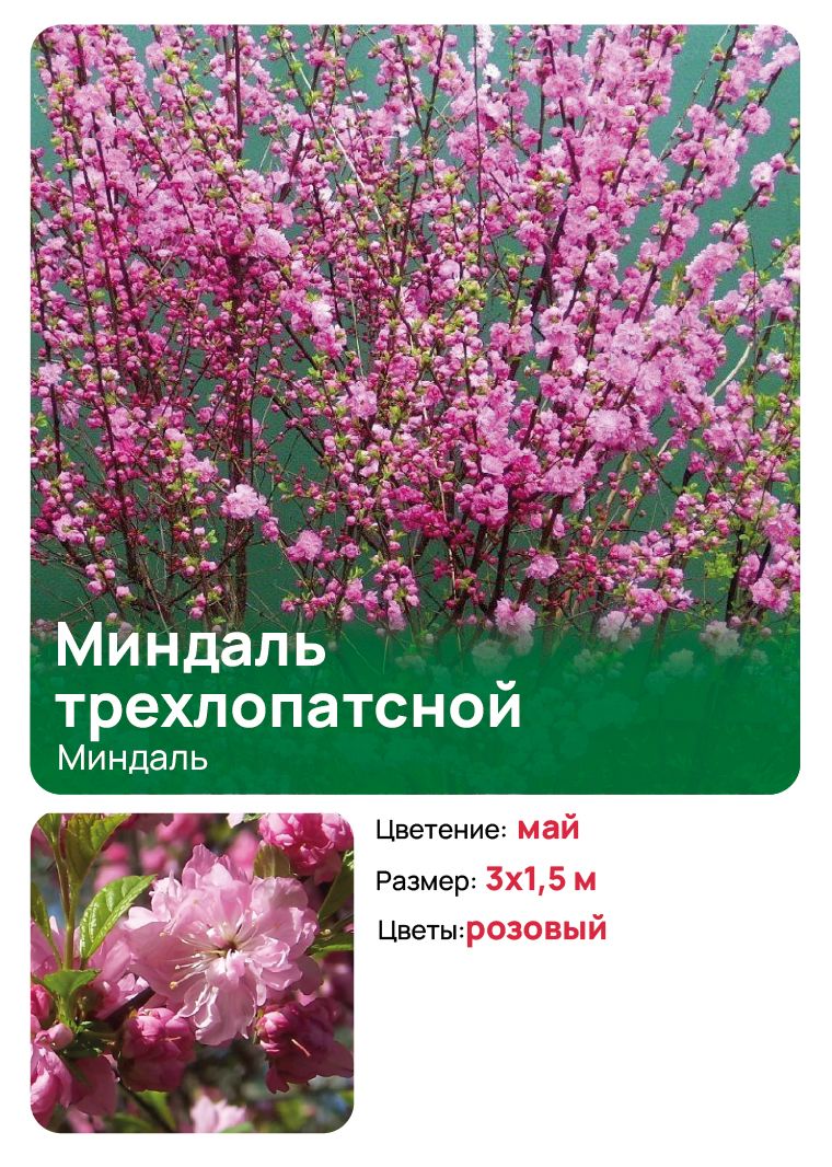 Миндаль трехлопастной - Невысокий декоративно цветущий многолетний косточковый кустарник листопадного типа относится к семейству Розоцветные. Высота раскидистого, многоствольного кустарника не более 3 м, зависит от климатической зоны выращивания. Крона шаровидная, побеги торчащие темно-серые. Листья 6-8 см длиной, матовые, с заметным вдавленным жилкованием, по краю крупнозубчатые. Луизеания трёхлопастная получила своё название из-за характерной формы листовой пластины – одна лопасть на кончике листа, две – по бокам.