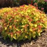 Спирея Дабл Плей Биг Бэнг - яркий, удивительно декоративный сорт с пестрой листвой меняющий окраску весь сезон - от желто-оранжевой весной к золотисто-желтой летом и оранжево-красной осенью. К тому же куст очаровательно цветет в начале лета пышными розовыми соцветиями. Если увядшие соцветия вовремя срезать - цветение будет более пышным.