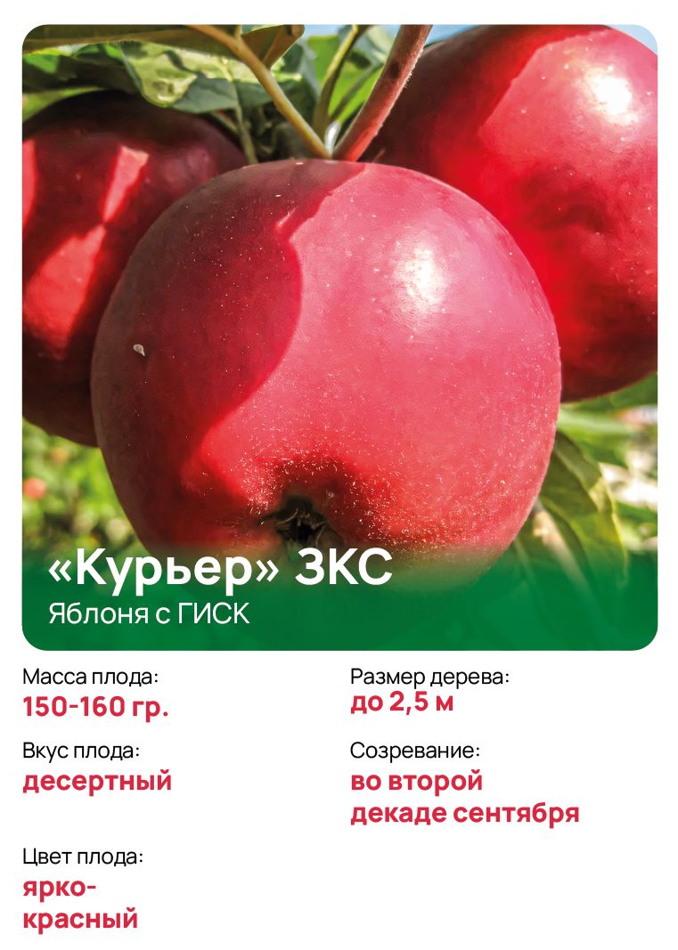 Яблоки массой в 150-160 гр, округло-конические, с прочной кожицей, ярко-красной окраской по всей поверхности. Мякоть белая,мелкозернистая, сочная, плотная, десертного вкуса.
